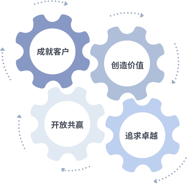 成就客户是一切决策的出发点,,,,创造价值是衡量所有工作的标准,,,追求卓越是AG尊龙凯时做事做人的态度,,,,开放共赢是AG尊龙凯时的格局也是最终的结果。。。。价值观的齿轮环环相扣,,推动着组织里的每个人不断向前。。